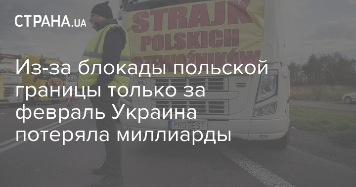 За февраль Украина потеряла 8 млрд грн из-за блокады украинской продукции на польских границах.