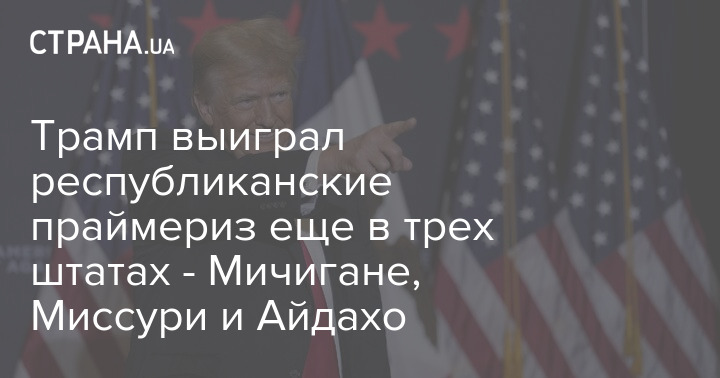 Баллотирующийся в президенты США Дональд Трамп выиграл республиканские праймериз еще в трех штатах - Мичигане, Миссури и Айдахо.