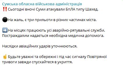 Ночью 6 марта в Сумах было три прилета "Шахедов".