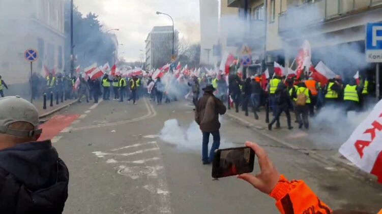 В Варшаве начались столкновения между фермерами и полицией. Протестующие пытались прорваться в Сейм. Видео