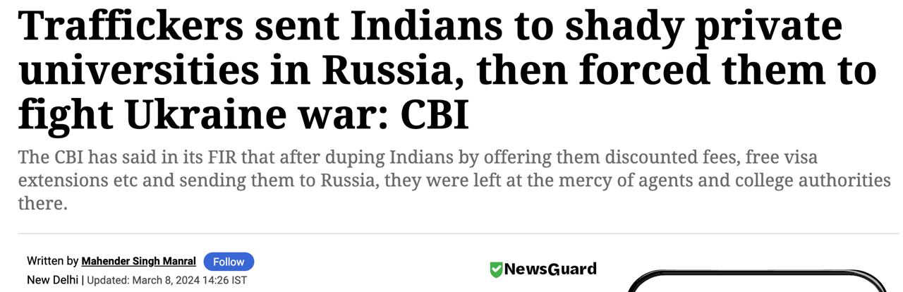 По данным следствия, торговцы в семи городах по всей стране завлекали студентов под предлогом поступления в частные университеты в России с бесплатным или льготным продлением визы и скидкой на оплату обучения. Однако после прибытия в Россию паспорта этих индийцев отбирали и их отправляли на военное обучение, а затем воевать в Украину против их воли.
