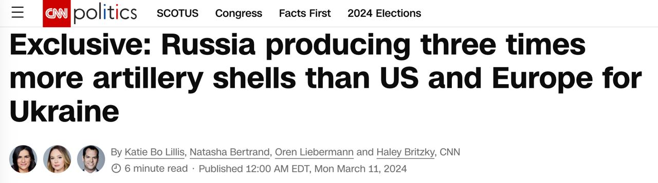 13.00 Россия производит почти в три раза больше артиллерийских снарядов, чем США и Европа вместе могут отправить в Украину, сообщает CNN.