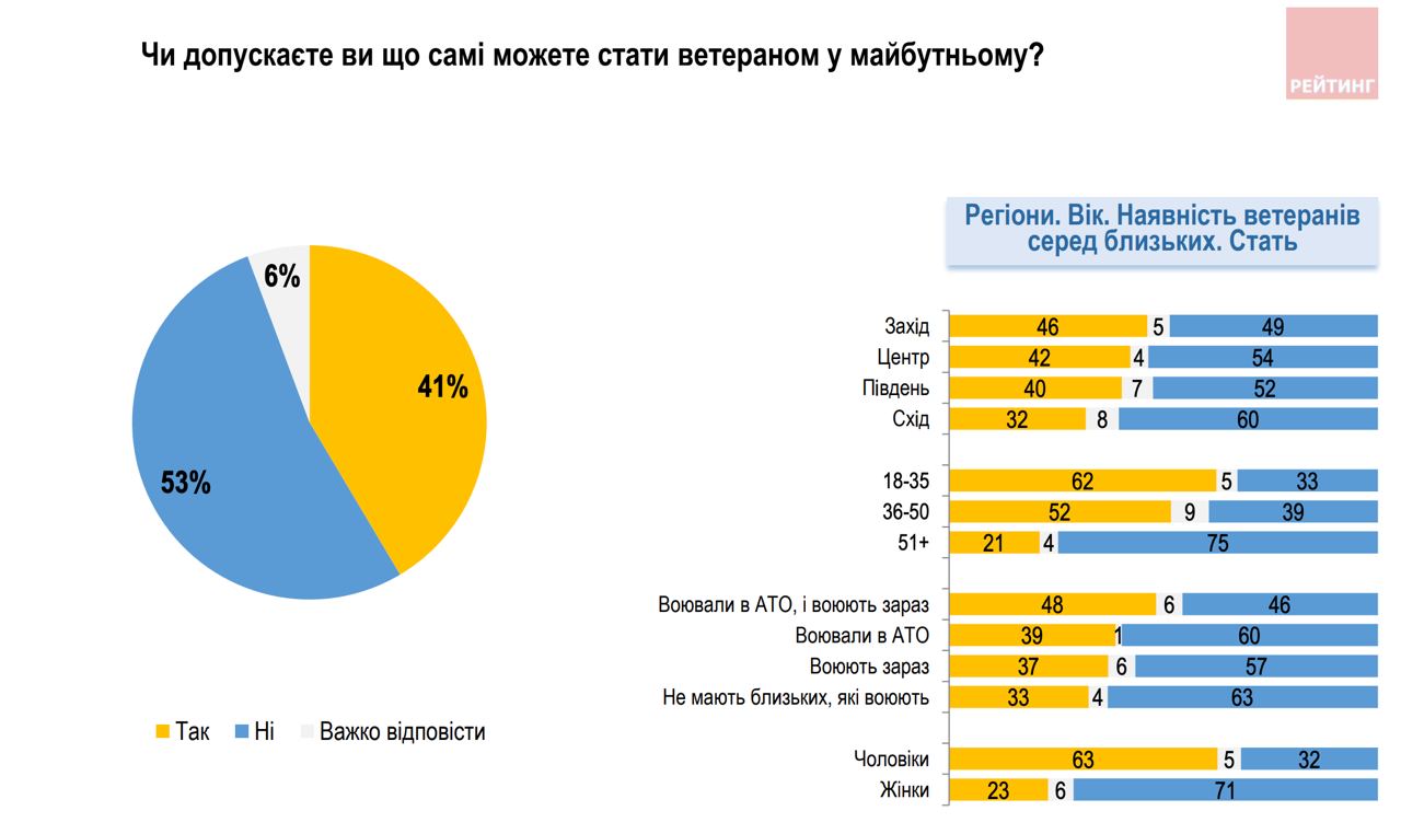 41% опрошенных допустили, что могут и сами принять участие в боевых действиях. 53% отрицают такую возможность, 6% воздержались от ответа.
