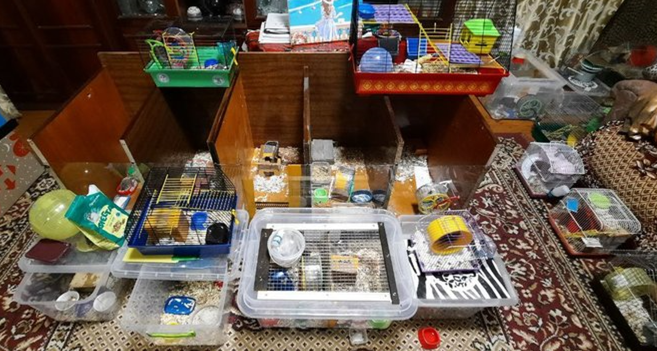 Спасенных от войны хомяков она поселила в двух комнатах. Всем не хватало отдельных клеток, поэтому они живут по двое-трое.