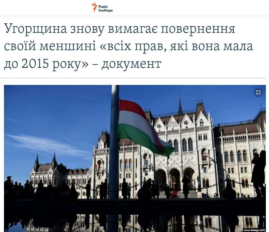 Венгрия требует возвращения своему меньшинству всех прав, которые у него были до 2015 года.