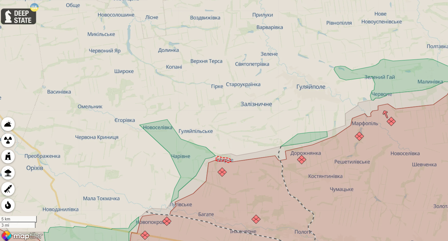 Мирное находится недалеко от Гуляйполя. Этот участок фронта был малоактивным с лета 2022 года. Но теперь, если исходить из сообщения МО РФ, там началась активизация.