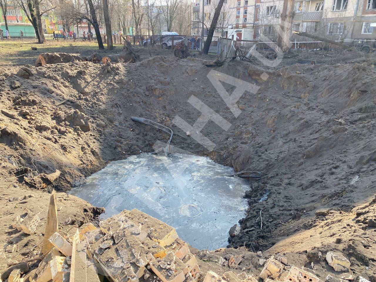Обломки сбитой ракету упали во дворе жилого дома, образовалась огромная воронка 15 на 15 метров.