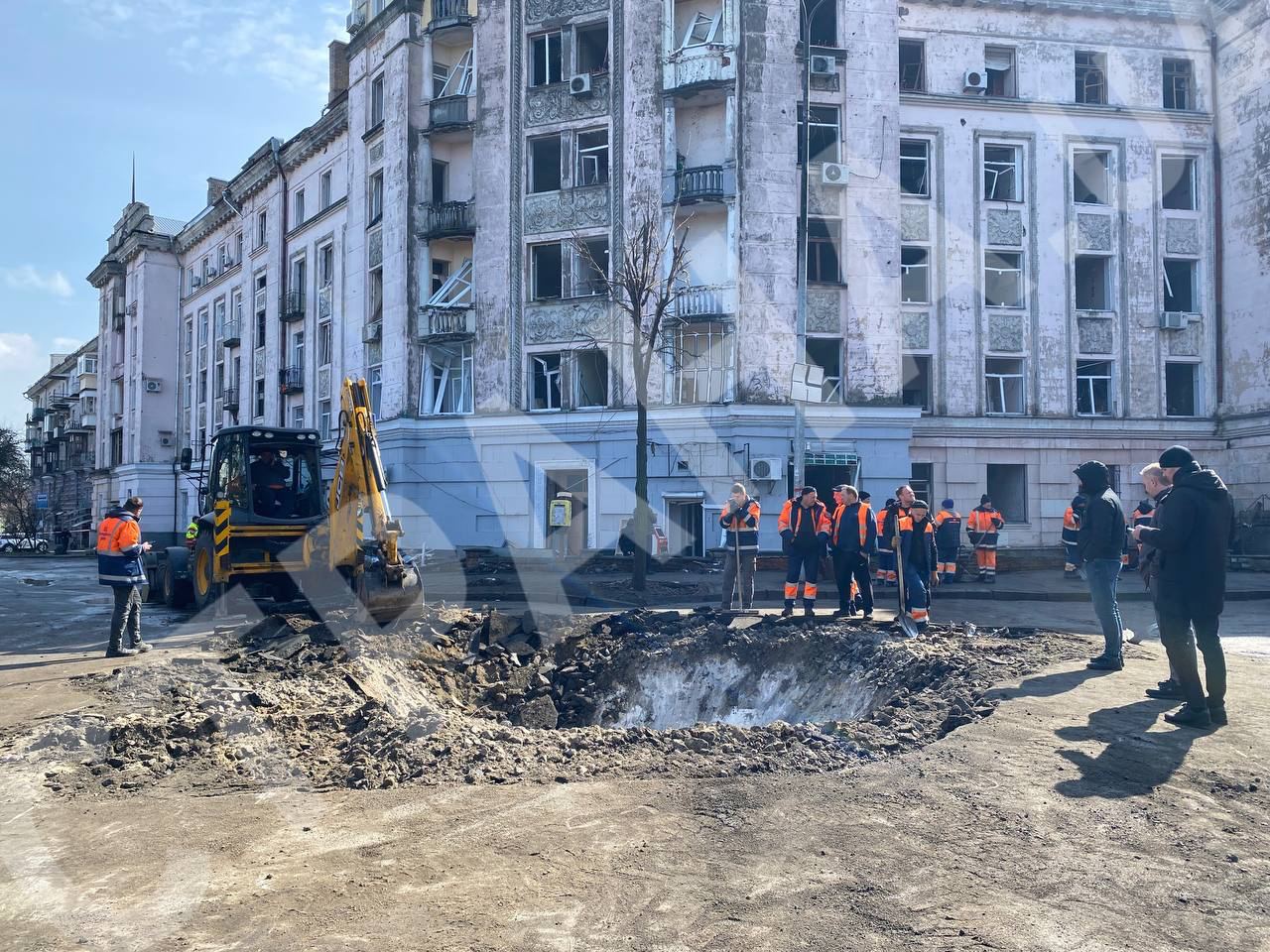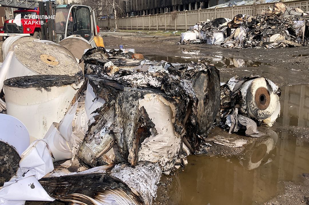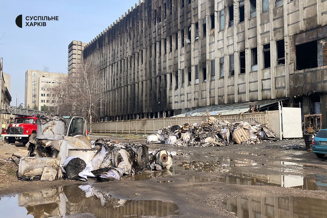 10.59 Утренние кадры с места вчерашнего прилета по типографии в Харькове.