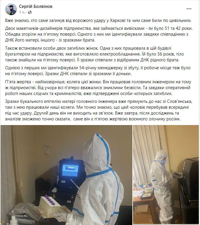 20.21 В Харькове установили четверых из пяти погибших в результате вчерашнего ракетного удара.
