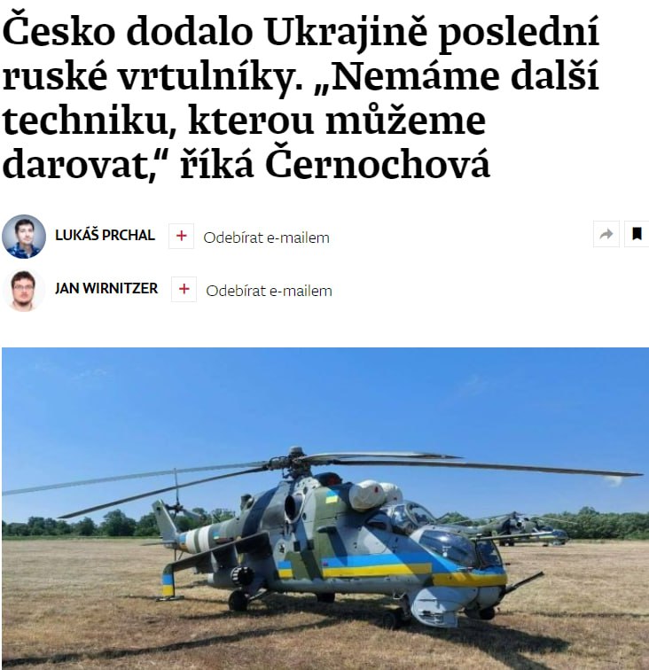 21.34 Чехия передала в дар Украине свои последние вертолеты Ми-24/35, сообщил новостной портал Denik Nсо ссылкой на министерство обороны республики.