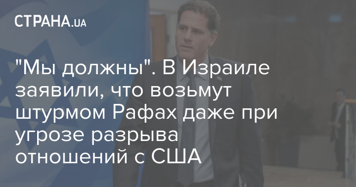 Израиль возьмет под свой контроль город Рафах, даже если это повлечет разрыв отношений с Соединенными Штатами.