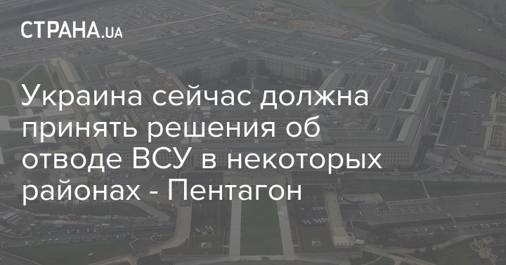 Украина сейчас должна принять решения об отводе ВСУ в некоторых районах - Пентагон