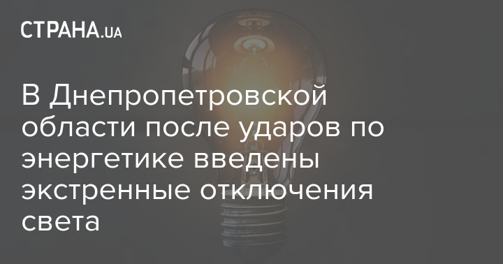 В Днепропетровской области введены экстренные отключения света. Причина - повреждены объекты генерации, передачи и распределения электроэнергии.