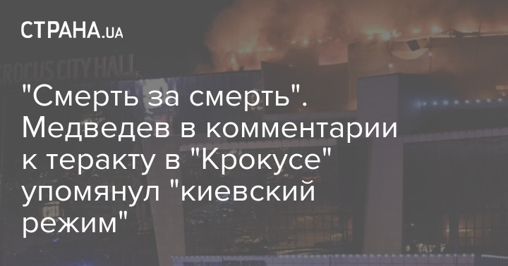 Заместитель главы российского Совета безопасности Дмитрий Медведев первым среди официальных российских лиц упомянул в связи с терактом в концертном зале "Крокус" украинскую власть.
