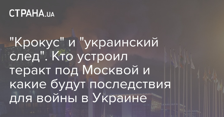 Версия Украины. В Киеве заявили, что теракт в "Крокусе" организовал сам Кремль для оправдания эскалации войны в Украине.