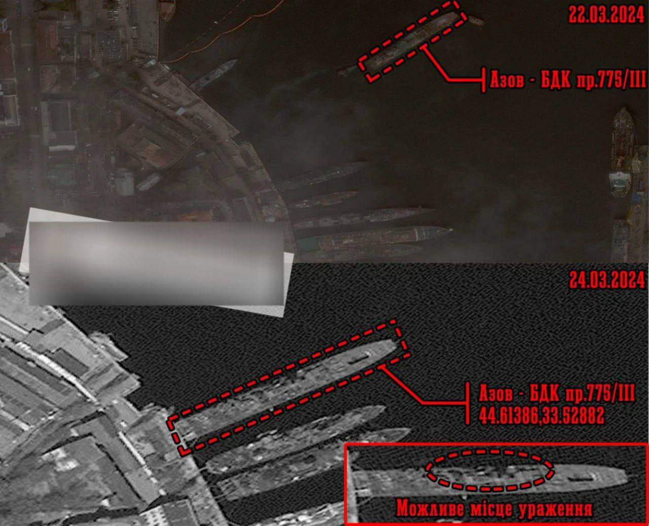 ГУР заявляет, что большой десантный корабль "Ямал" в Севастополе получил критические повреждения во время ракетного удара 23 марта.