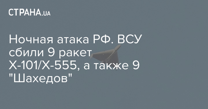Ночная атака РФ. ВСУ сбили 9 ракет Х-101/Х-555, а также 9 "Шахедов"