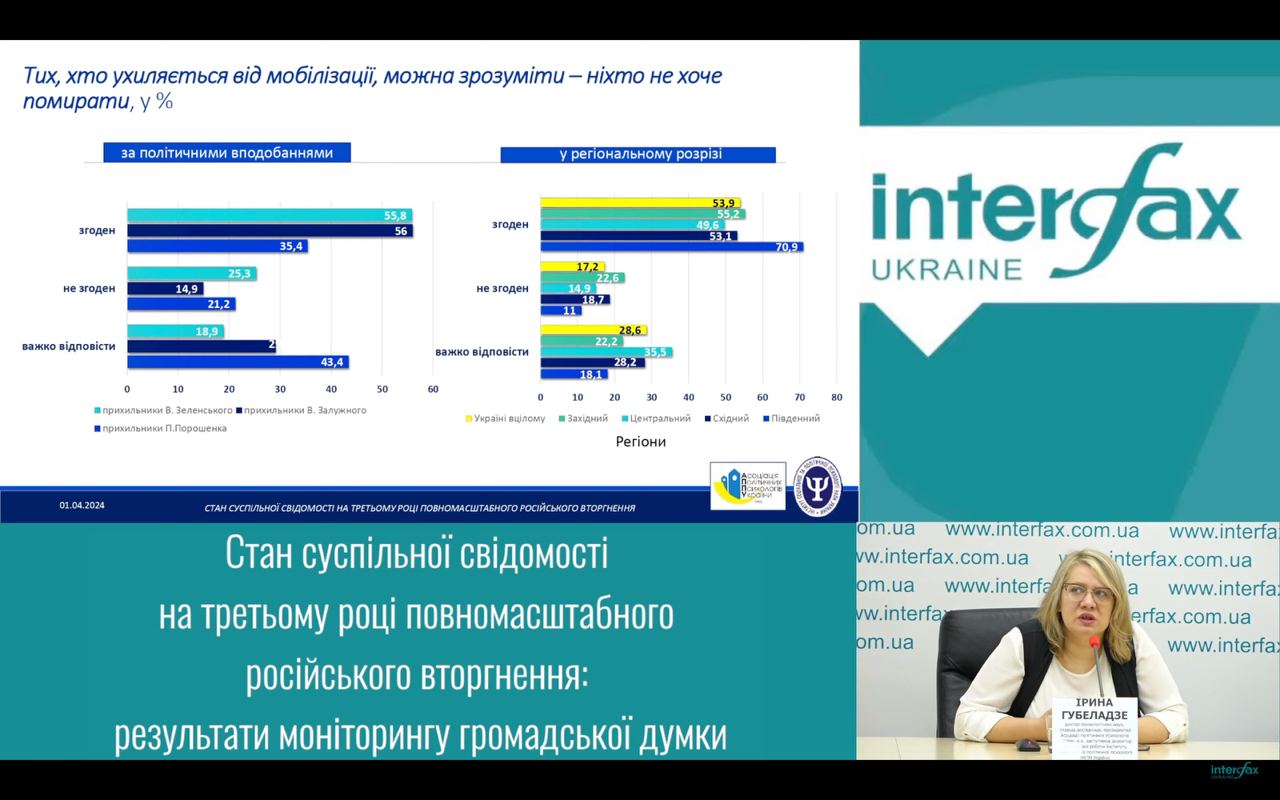 Наибольшую лояльность в этом вопросе проявили жители южных областей. Там более 70% считают, что желающих уклониться от мобилизации "можно понять", ведь "никто не хочет умирать".