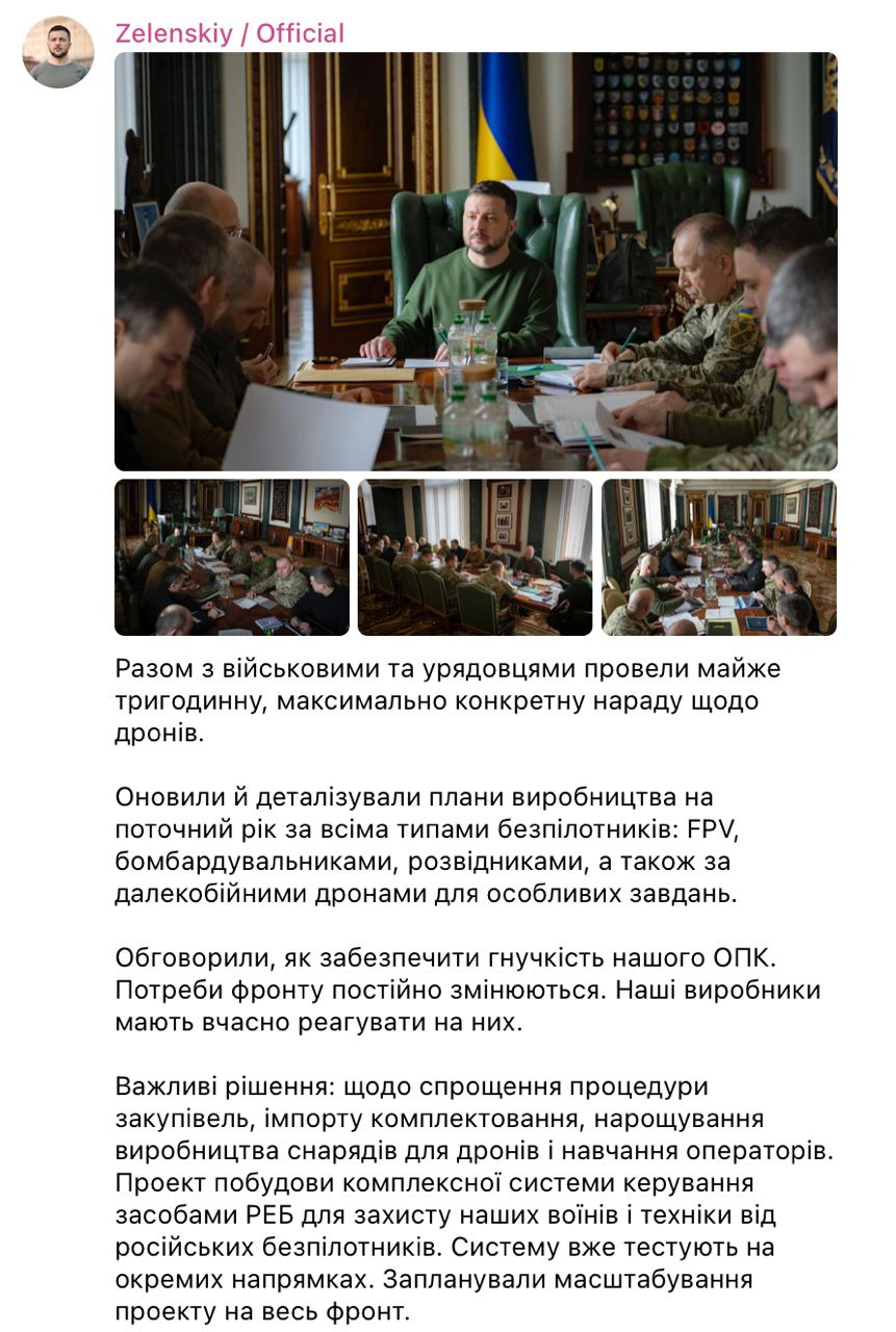 Были приняты решения по упрощению процедуры закупок, импорта комплектующих, наращивания производства снарядов для дронов и обучения операторов.