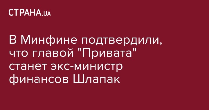 В Министерстве финансов утвердили должность нового главы правления уже национализированного "ПриватБанка". Им станет Александр Шлапак, экс-министр финансов в правительстве Арсения Яценюка. Об этом сообщает "112 Украина"