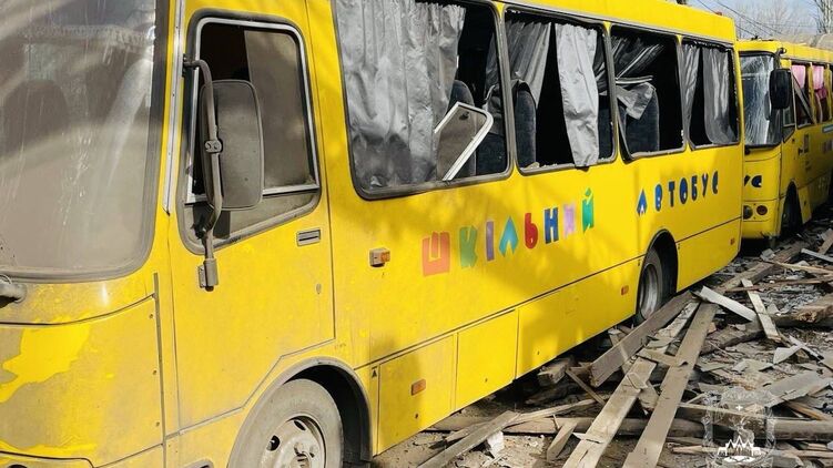 В эпицентре удара оказалось коммунальное предприятие. Повреждены школьные автобусы, гуманитарный транспорт и два админздания, рассказали в ГВА.