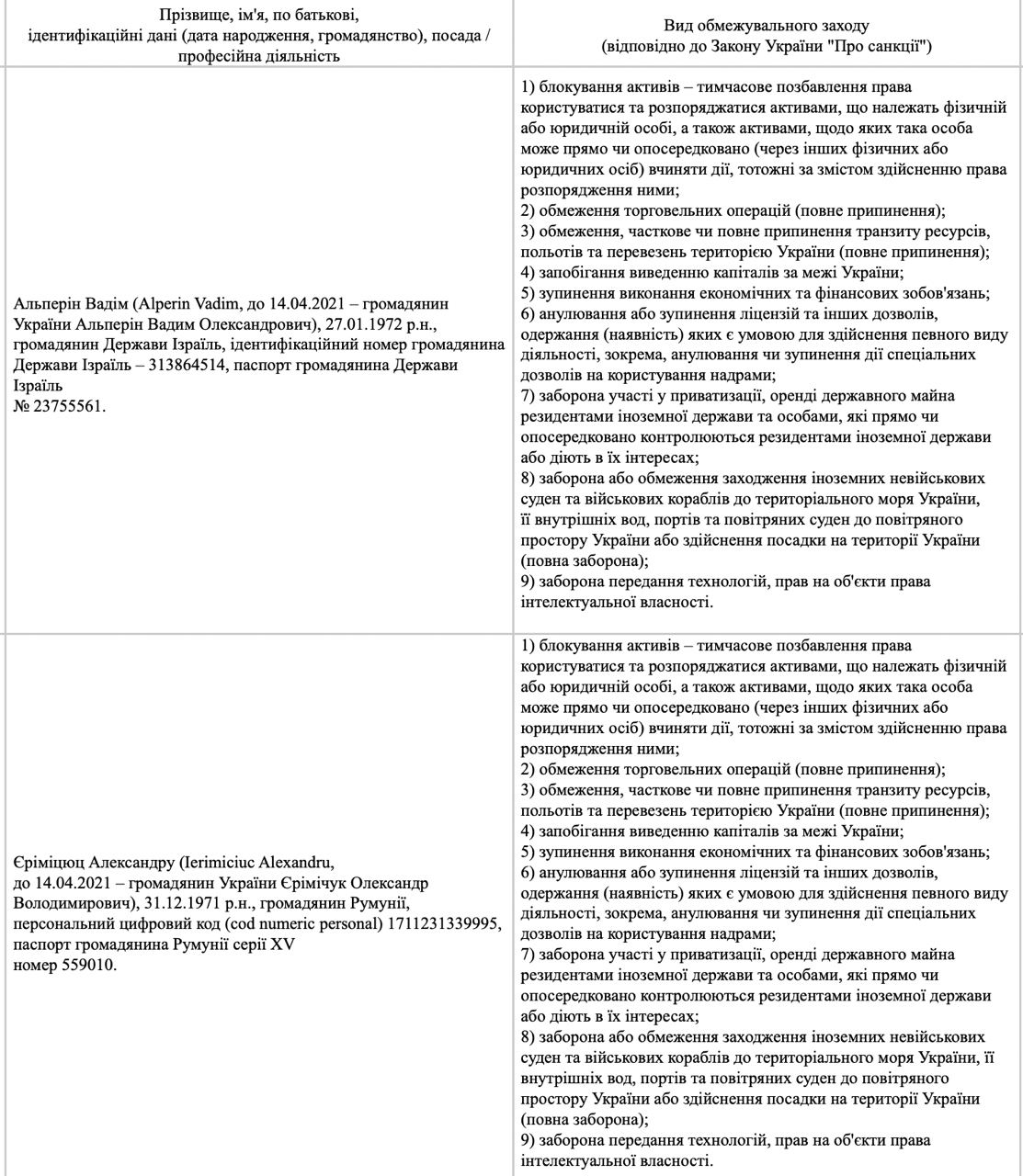 Президент Украины Владимир Зеленский продлил санкции СНБО против ряда бизнесменов, в том числе украинских, а также ряда украинских компаний, связанных, судя по всему, с указанными лицами.