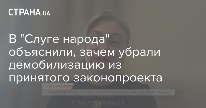 Об этом заявила замглавы фракции "Слуга народа" Евгения Кравчук в эфире телемарафона.