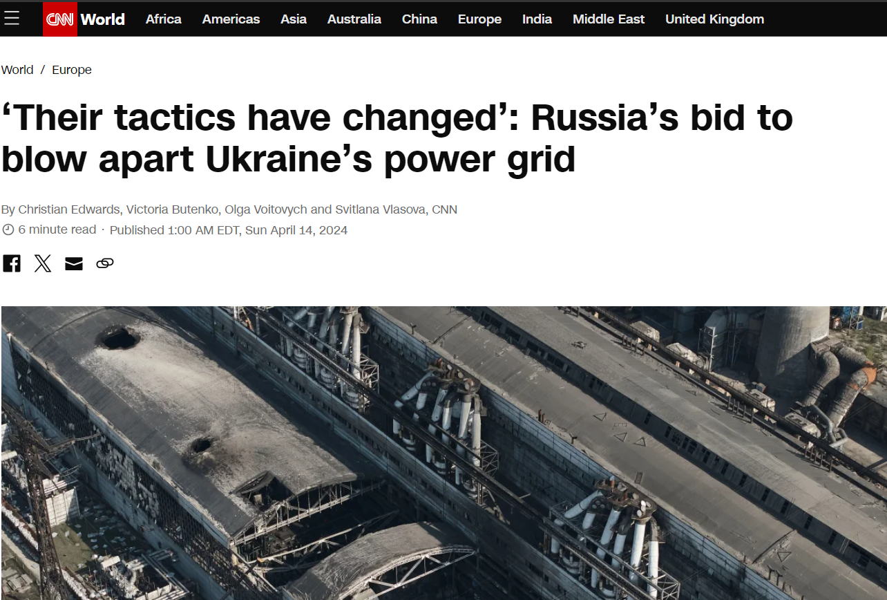 15:30 После зимы Украина переместила часть ПВО от инфраструктуры на передовую, что и позволило РФ, нанести массированный удар по электростанциям, пишет CNN.