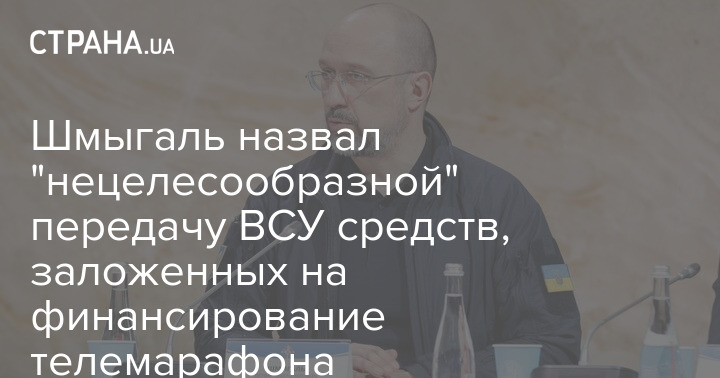 Премьер-министр Украины Денис Шмыгаль назвал "нецелесообразной" передачу ВСУ средств, заложенных на финансирование телемарафона.