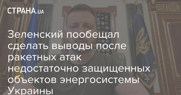 Зеленский пообещал сделать выводы после ракетных атак недостаточно защищенных объектов энергосистемы Украины