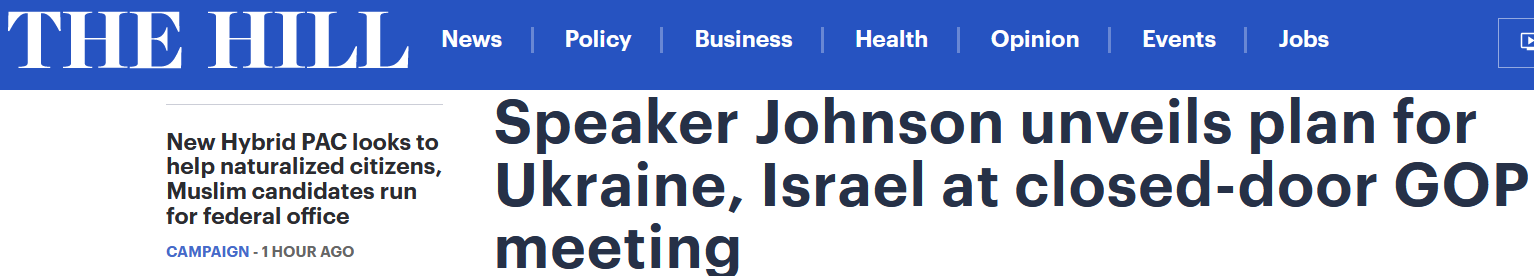 Спикер Палаты представителей Конгресса США Майк Джонсон заявил, что Палата разделит законопроект о помощи Украине и союзникам на четыре части.