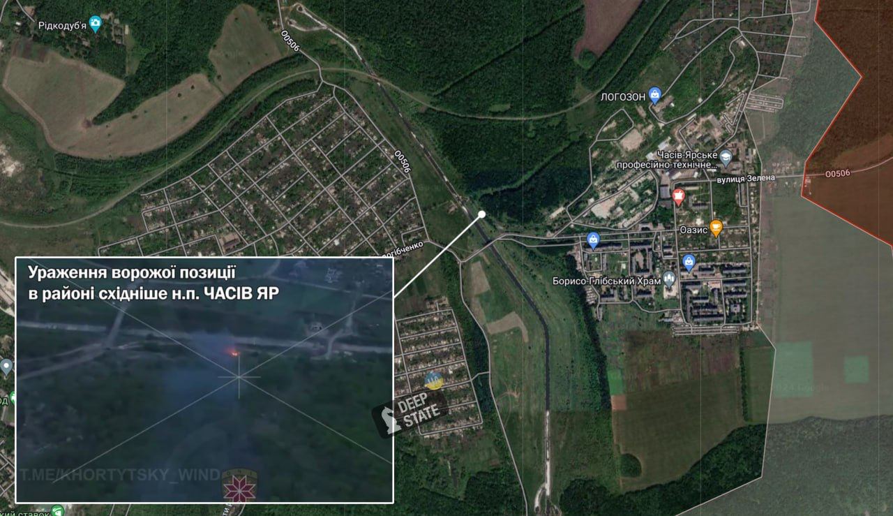 Российские военные могли продвинуться на полтора километра в Часов Яр. Они обратили внимание на видео ОСУВ "Хортица" с поражением вражеской позиции возле канала в городе.