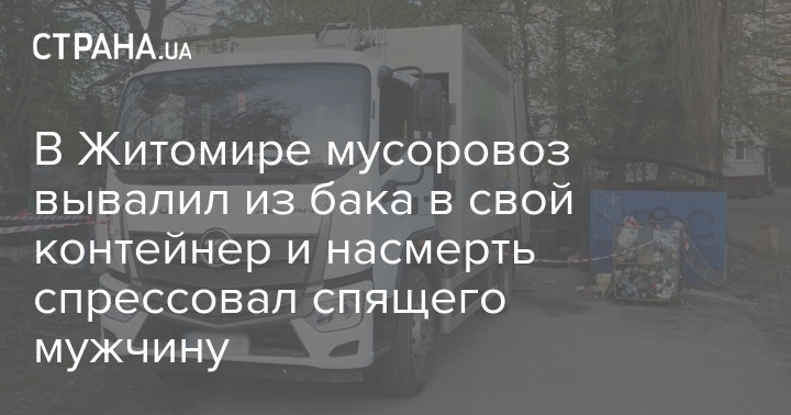 В Житомире мусоровоз спрессовал насмерть мужчину, который спал пьяным в мусорном баке.
