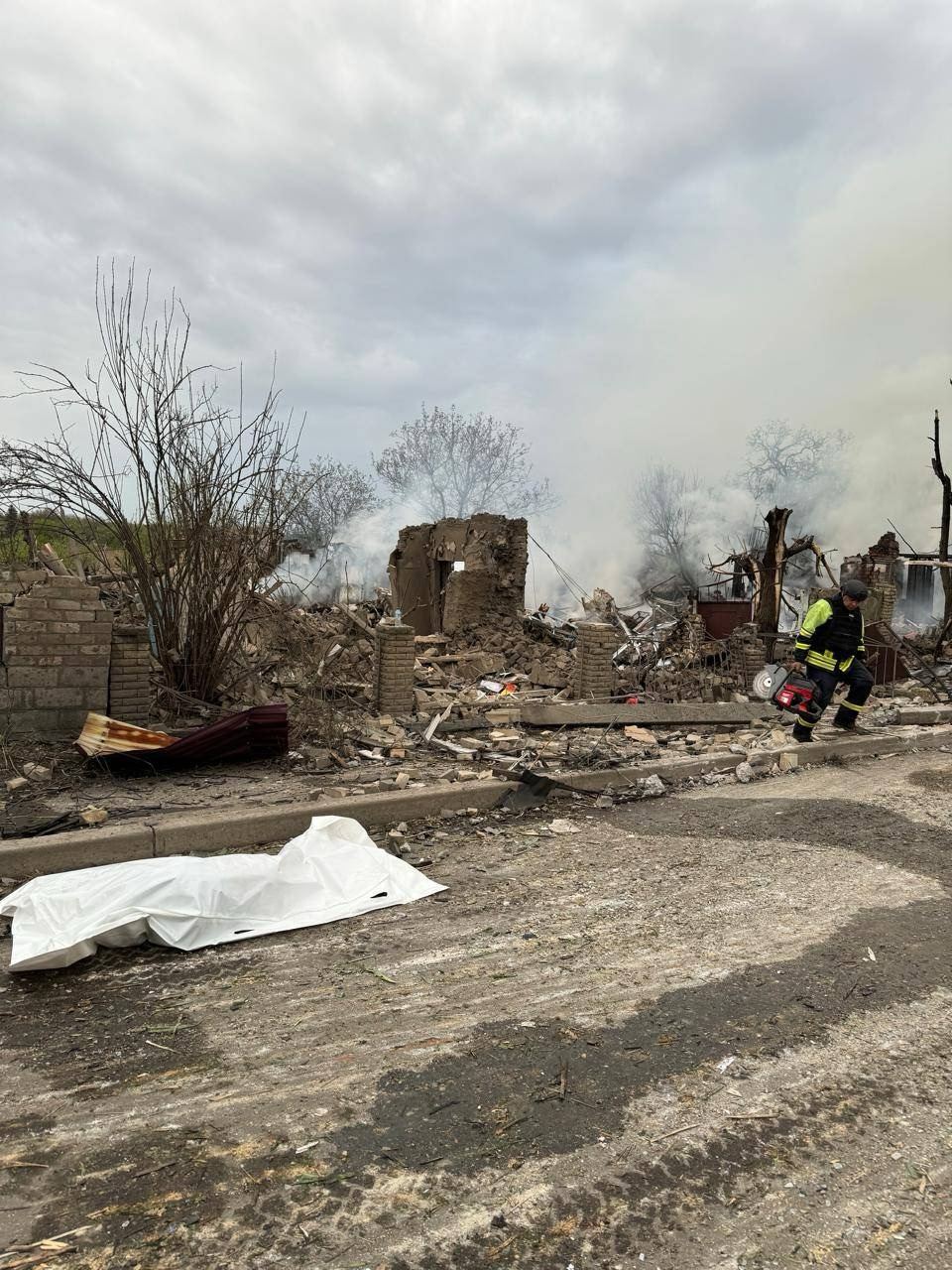 Как сообщает Нацполиция, разобрано более 70% разрушенного ударом здания (видимо, речь идет о пострадавшей гостинице).