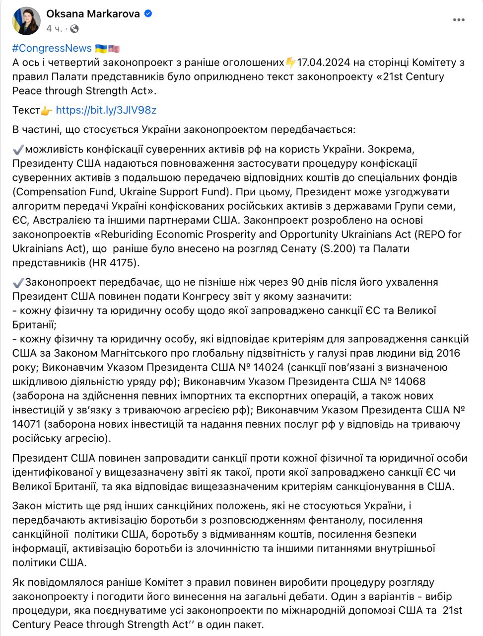 10:47 Опубликован последний из четырёх законопроектов спикера Палаты представителей Джонсона, который касается, в том числе Украины.