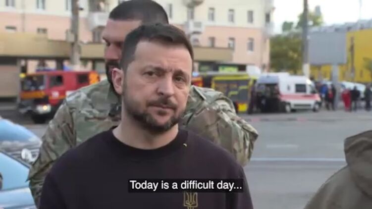Видео было опубликовано в телеграм-канале верховного главнокомандующего во время посещения президентом Днепра, где от ракетной атаки РФ был разрушен вокзал и погибли мирные жители.