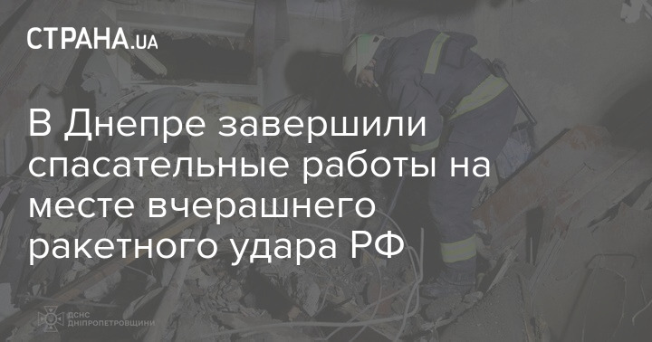 В Днепре завершили аварийно-спасательные работы на месте вчерашнего ракетного удара. Обнаружено тело еще одного погибшего. Итого их трое.
