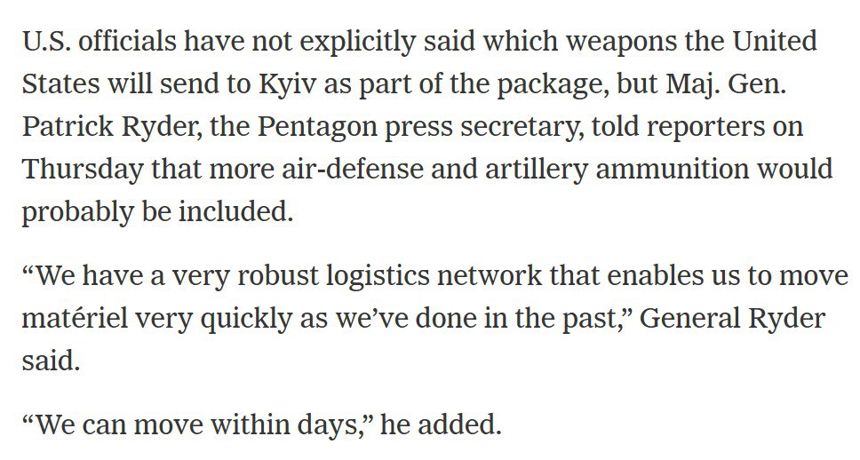 Он уточнил, что в первый пакет помощи будет включено больше боеприпасов для ПВО и артиллерии.