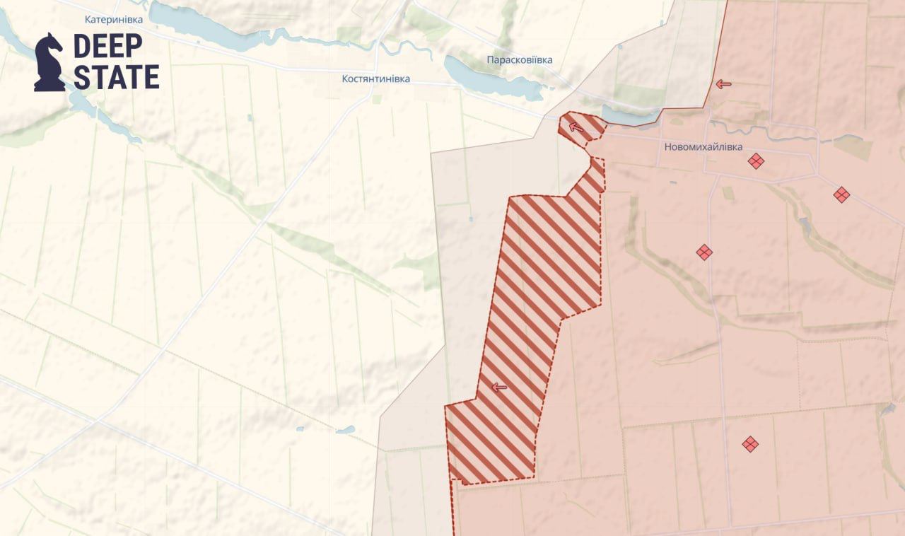 Украинский ресурс Deep State сообщает, что РФ продвинулась в этом селе, а его карта подтверждает, что оно практически полностью захвачено.