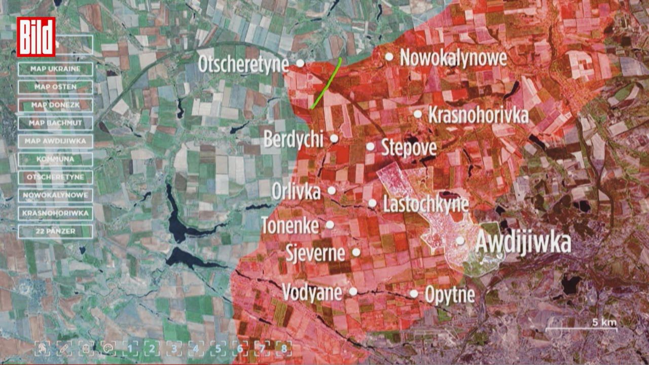 15.49 Российские войска прорвали украинскую оборону к северо-западу от Авдеевки и зашли в поселок Очеретино, заявляет военный аналитик Bild Юлиан Репке. По его данным, армия РФ продвинулись вдоль железной дороги на 3 км вглубь украинских позиций и вошла в посёлок.