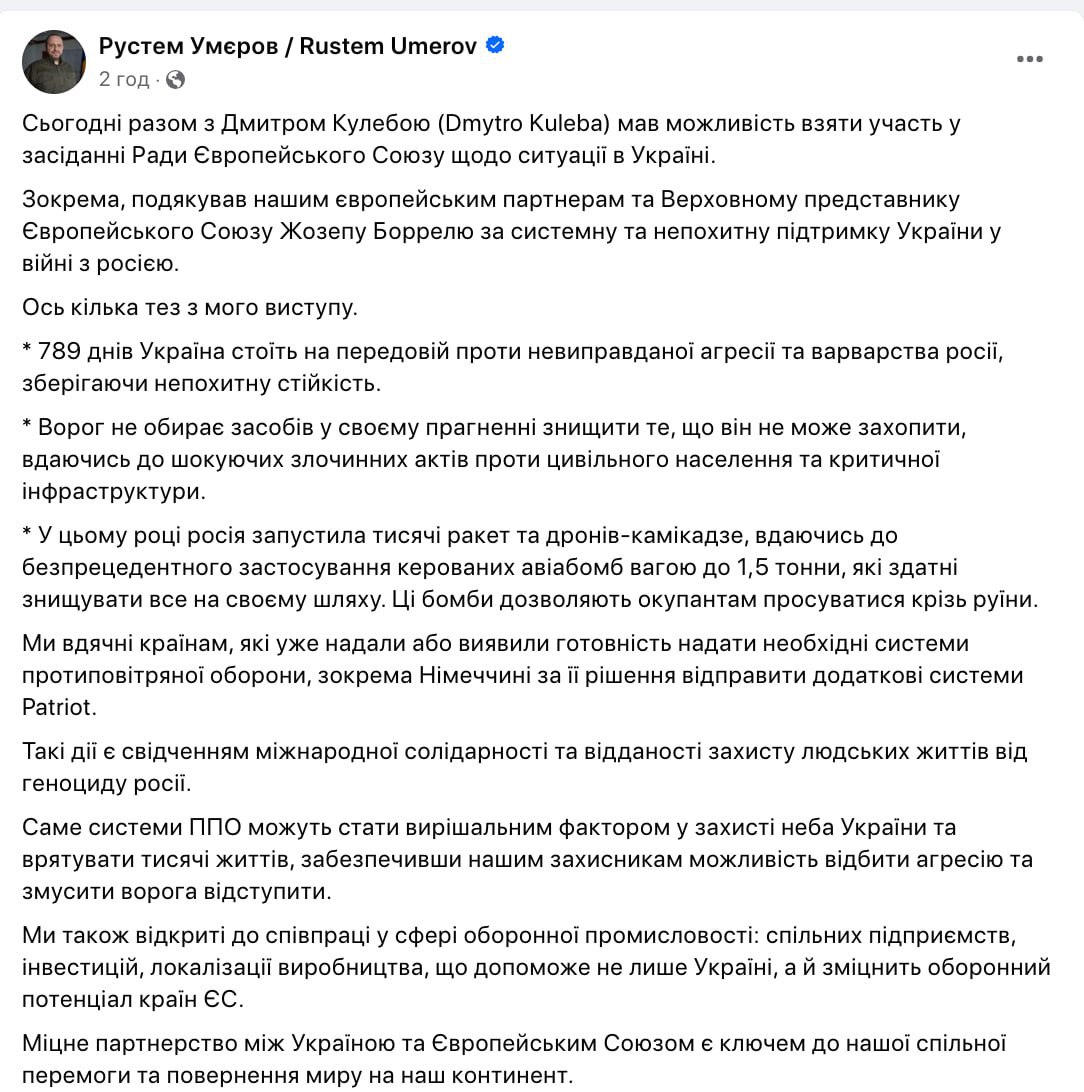 "В этом году Россия запустила тысячи ракет и дронов-камикадзе, прибегая к беспрецедентному применению управляемых авиабомб весом до 1,5 тонн, которые способны уничтожать все на своем пути", - заявил министр обороны.