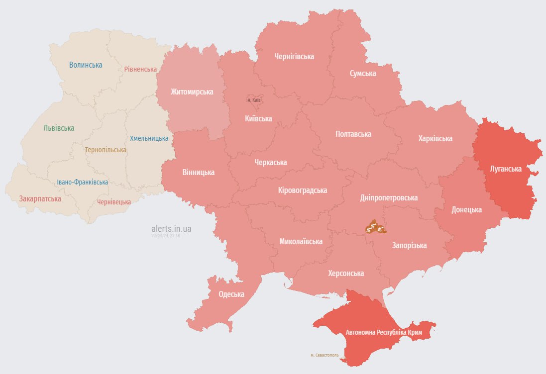 22.20 В Киеве и на большей части Украины воздушная тревога.