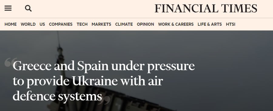 Члены ЕС и НАТО давят на Грецию и Испанию, требуя предоставить Украине системы ПВО.