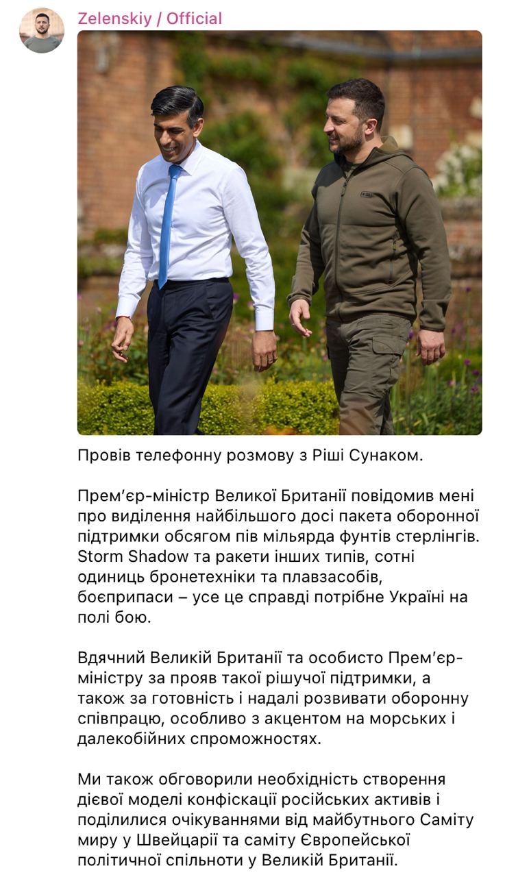 2. Прокомментировал пакет помощи от Великобритании, о котором президент говорил с премьером Сунаком.