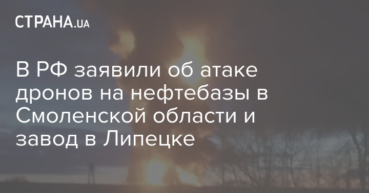В РФ заявили, что сегодня ночью дроны ударили по двум нефтебазам в Смоленской области.