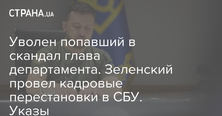 Уволен попавший в скандал глава департамента. Зеленский провел кадровые перестановки в СБУ. Указы