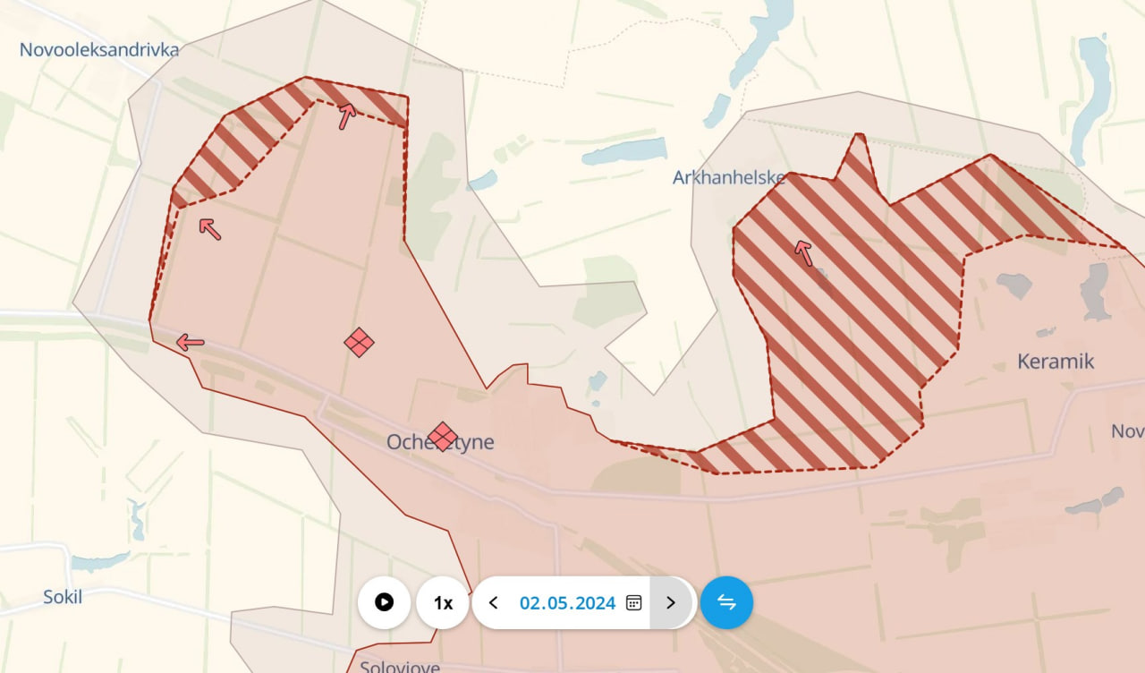 Тем временем Deep State сообщает о существенном продвижении армии РФ возле Очеретино - в Архангельском, где, судя по карте ресурса, бои идут в середине поселка, и возле Новоалександровки. А также южнее - под Первомайском.