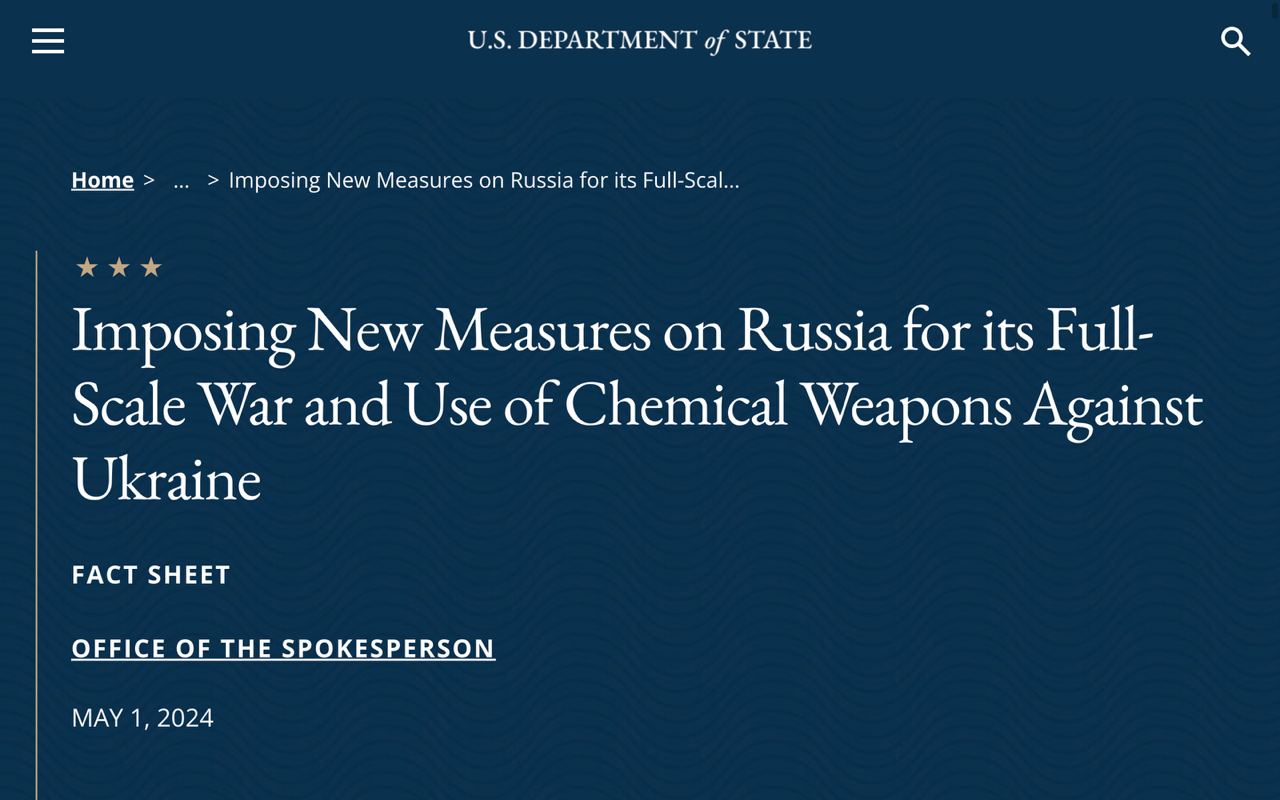 Госдеп заявляет, что россияне неоднократно использовали хлорпикрин против ВСУ, нарушив Конвенцию о химическом оружии.