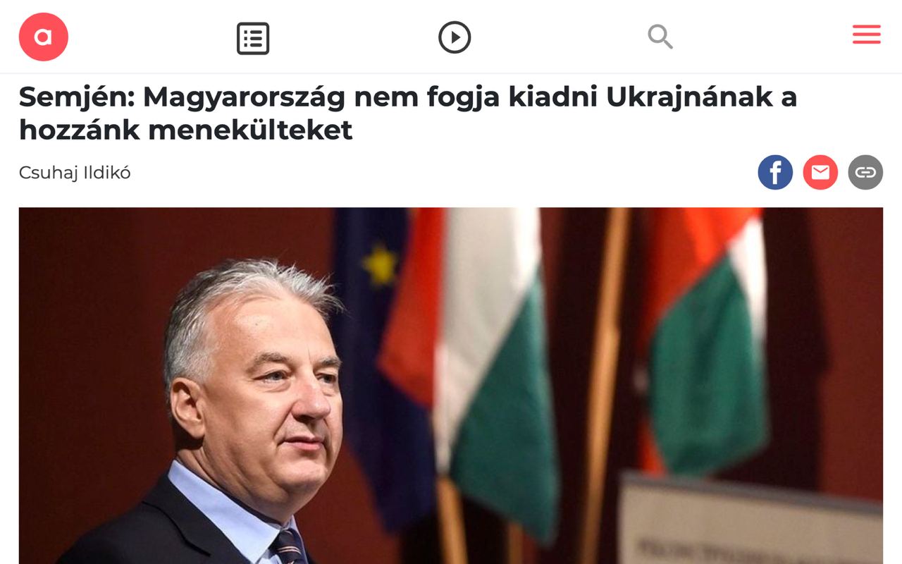 "Мы не расследуем, подлежит ли человек, по мнению украинских властей, призыву на военную службу или нет. Исходя из принципов гуманности, мы не позволим отправить их на смерть. Каждый беженец из Украины у нас находится в полной безопасности и получает всю помощь, будь то венгерская или украинская", - заявил он.
