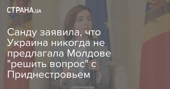 Президент Молдовы Майя Санду заявила, что Украина никогда не предлагала Молдове "решить вопрос" с Приднестровьем.